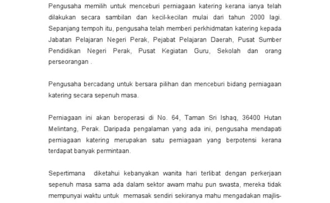 View kerja kursus pp.docx from perniagaan bopm6034 at pejabat hal ehwal pelajar. Pengenalan perniagaan perkongsian saya, en. Perniagaan saya ini merupakan sebuah perniagaan milikan tunggal dengan modal sebanyak rm 80,000 . Rithuwan nasir dan dua rakan kongsi,. Baca versi flipbook dari kerja kursus perniagaan 2020. Contoh pengenalan kerja kursus perniagaan tingkatan 5 prinsip perakaunan kertas 3 spm 2020 profil kelab dan persatuan otosection. Kepentingan pemasaran dalam perniagaan (4p). Galakan perniagaan bagi kakitangan yang menyertai kursus ini. 32a , jalan usahawan 2 , . Seni percetakan rina & rakan rakan ini. Format kertas kerja pelan perniagaan projek aktiviti. Rancangan perniagaan nama calon no.